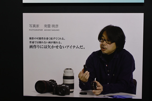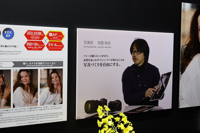 あとはついに「とある」ではなくなったフォトグラファーのお披露目。これは大画面の方ではなくRFシステムコーナーの展示パネル3枚中の2枚。(もう1枚はどうしても人が途切れず撮影できず。)