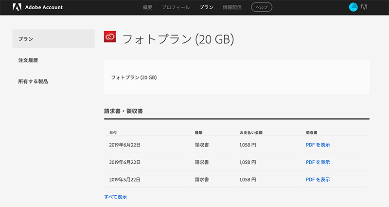契約管理上も以前の20GBプランと今回の1TBプランは別扱いになっています。このあとこの両者が統合されて有効期限が2020年7月21日になることはありませんでした。