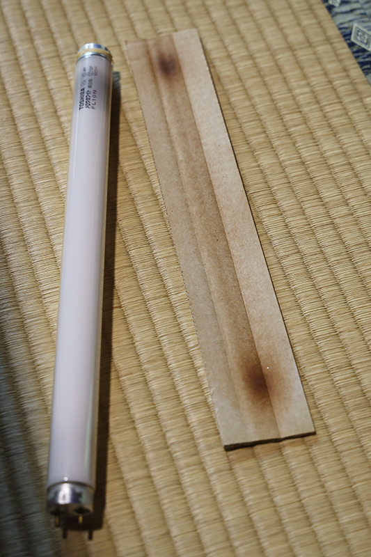 ちょっとまって。この蛍光灯の後ろの段ボールと、蛍光灯を留めている紙テープ何。