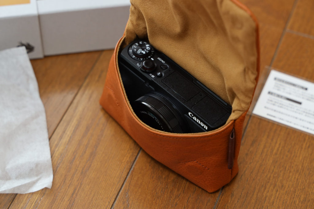 ユリシーズのサイトでもPowerShot G5X Mark IIに対して大きさはどうか、ということは書かれていなかったのですが、G7Xが入るとあったのでまぁ大丈夫だろうと踏みました。