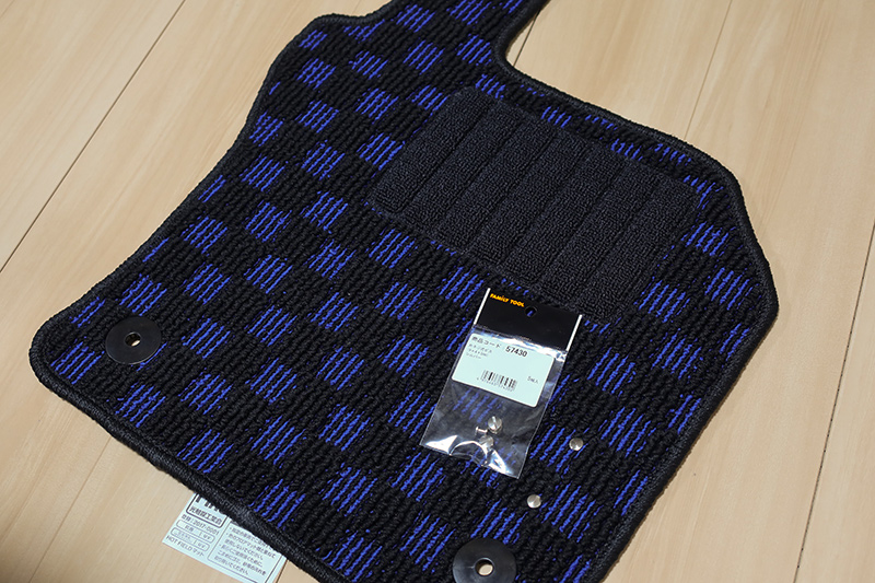 ホットフィールド社のフロアマットです。形状は純正品と全く同一。フロアへの固定ホールも互換性があります。新品時の写真を撮る前にバッジ移植用の穴を開けてネジ付けてしまいました(;´Д`)