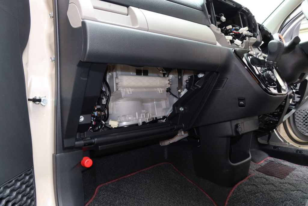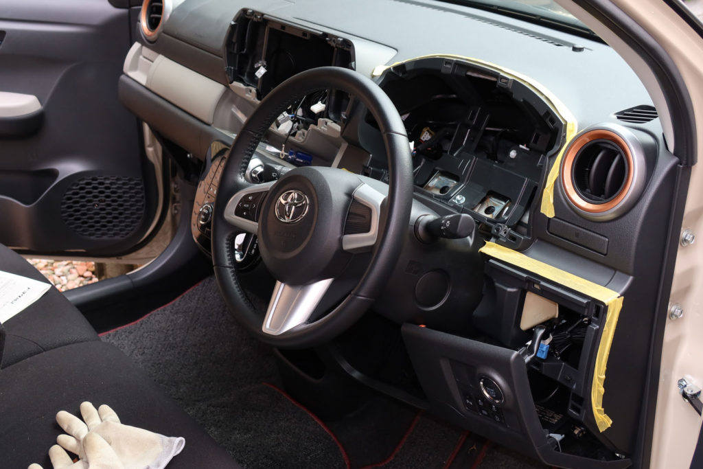 最後に、施工に当たってのパッソの内装ですが、思ったより外しやすかったです。取り付けるときも本当に自然にパチパチと組んでいくだけです。部品を捻りながらとかいうところはほとんどありません。ダイハツの設計の上手さもあるのでしょうが、そもそも安価なクルマは内装の固定方法も簡単ですね。