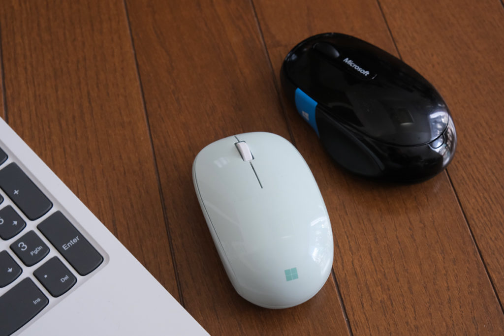 ムスメがパソコン内蔵のトラックパッド一本で作業をしているので、なぜマウスを使わないのかと尋ねたところ、マウスの接続がすぐ切れてしまって使い物にならないとのこと。Bluetoothマウスなので2.4GHzの何か干渉があるのかなと思いましたが、電波の少なそうな深夜に使っても確かにフリーズします。「静音クリック」が売りのナカバヤシ(株)製のマウスでしたが、やっぱり無線デバイスは信頼の置けるメーカーでないとダメかなぁと、今月発売になったMicrosoft Bluetooth Mouseを買ってみました。特にギミックのない、ごくベーシックなマウスです。