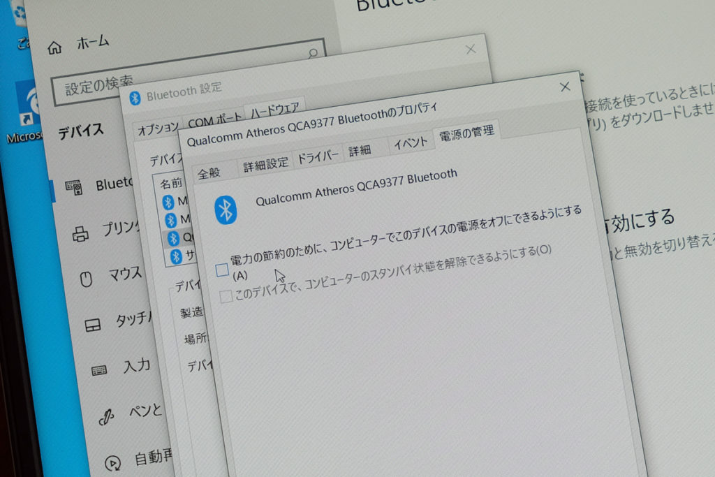 いろいろ設定を見渡したところ、パソコン側のQualcommのBTチップの設定のところにある、「電力の節約のために、コンピューターでこのデバイスの電源をオフにできるようにする」という項目のチェックボックスを外したところ、現象が解決しました。