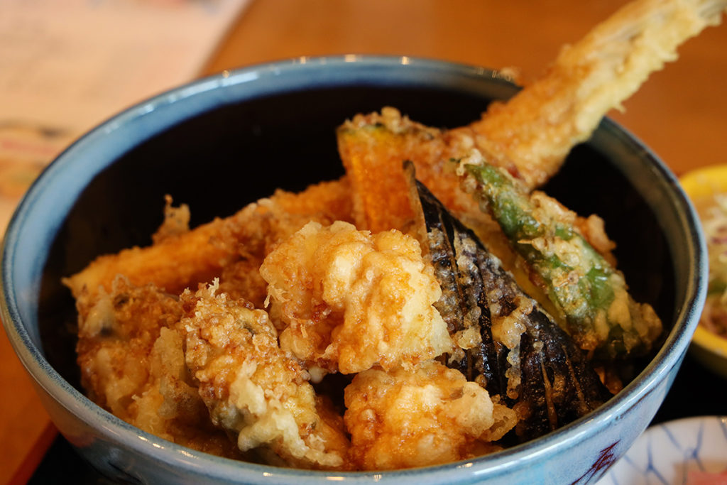 ゴローちゃんが食べた「五色海鮮丼」より「活穴子天丼」が食べたかったのですが、大きい穴子が水揚げされていないようで、次候補だった「旬天丼」に。「旬天丼」は写真を見ると「穴子、エビ、白魚、野菜4種」だったのですっかり口がそのようなモードになっていたのですが、満を持して出てきた天丼はなんか違う…!
