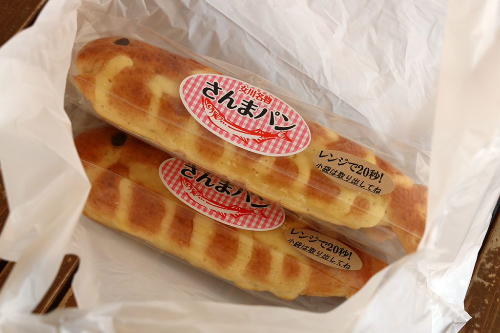 パンと魚というと、サバサンドのようなものを想像しますが、それとは全然違います。生地にさんまがミックスされていて、何か中に具が入っているわけではありません。表面にあまじょっぱいソースがうっすら塗られています。目を瞑って咀嚼すると、「さんまの焼魚」の風味がほんのりするのに、口の中に入っているのはあまじょっぱいパン…という、何とも今まで経験したことがない感覚です。決して生臭いわけではありませんが、そもそもサンマが嫌いな人はこれも苦手でしょうね(笑。サンマが好きならば一度は食べてみてもいいかも。