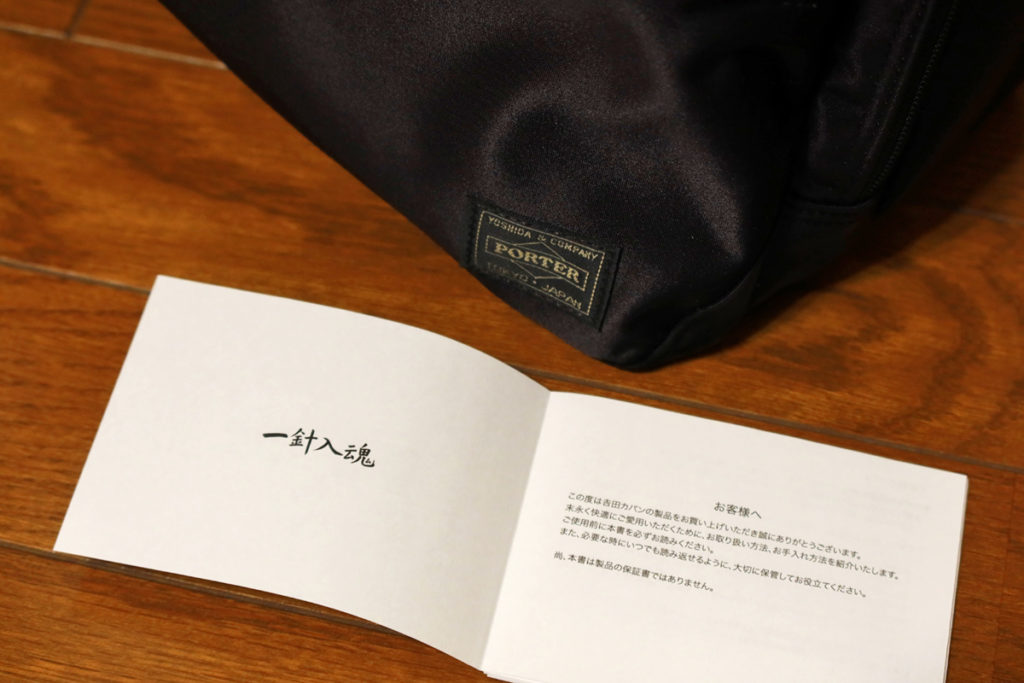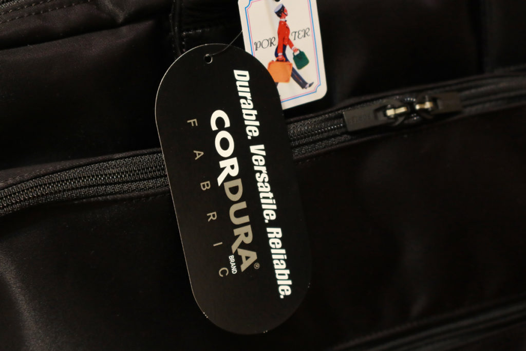 表皮は吉田カバンではお馴染みのコーデュラナイロン製。表面はテフロン加工、裏面はPVC素材で裏打ちとのことで防水性があります。(但し止水ファスナーではないのでそこから水は入ります。)