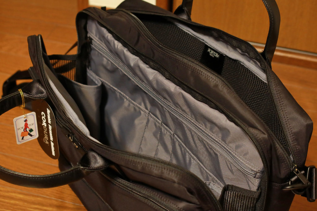 ただ、以前使っていたPORTER CLOUDと違って、ワイヤーフレームは入っていませんので、電車で座って膝の上に立てかけて、もたれかかることはできません。