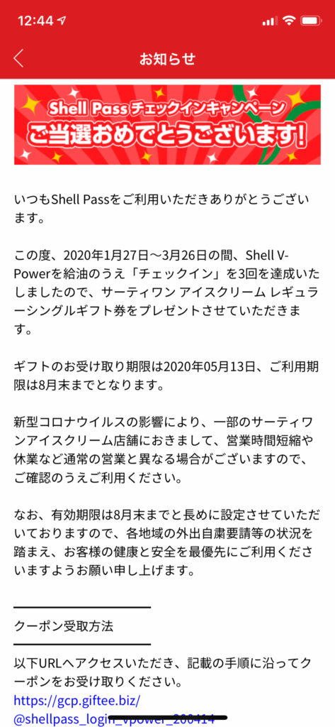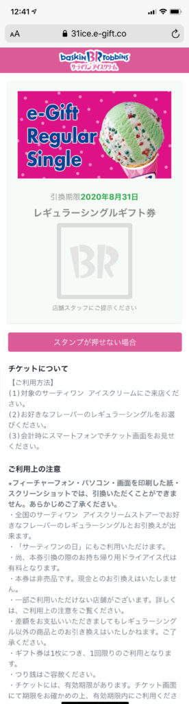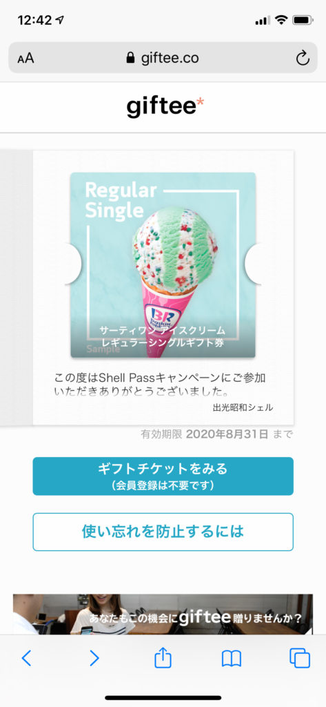いつも行っているガソリンスタンドで条件を満たしたので、31アイスクリーム券が当たったんですよね。