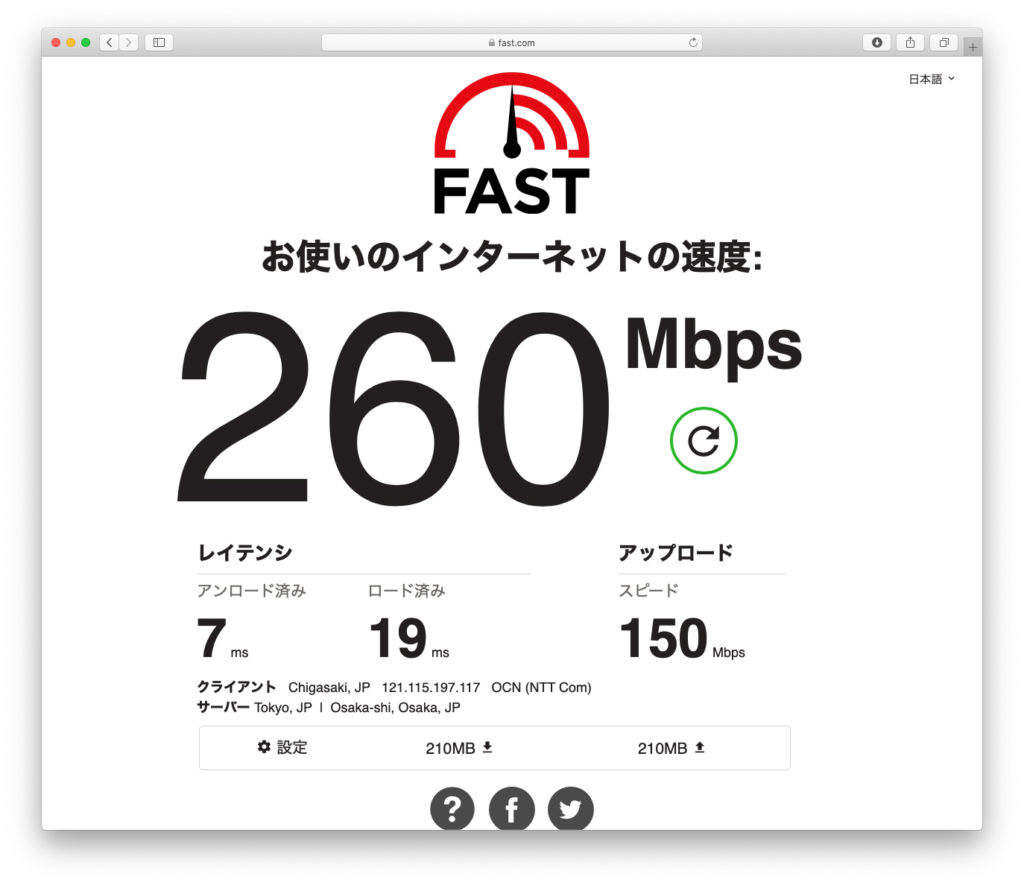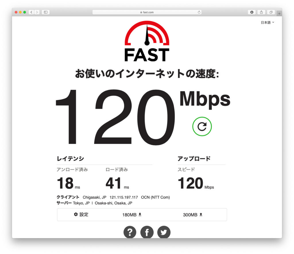 今回ハブを導入した後のiMacの有線接続の速度です。充分です。やっぱ有線接続はレイテンシの低さが素晴らしいですね。もっとも、今日は祝日なのでこの速度ですが、皆さんが在宅勤務を始めると速度はこの1/100程度になります(滅