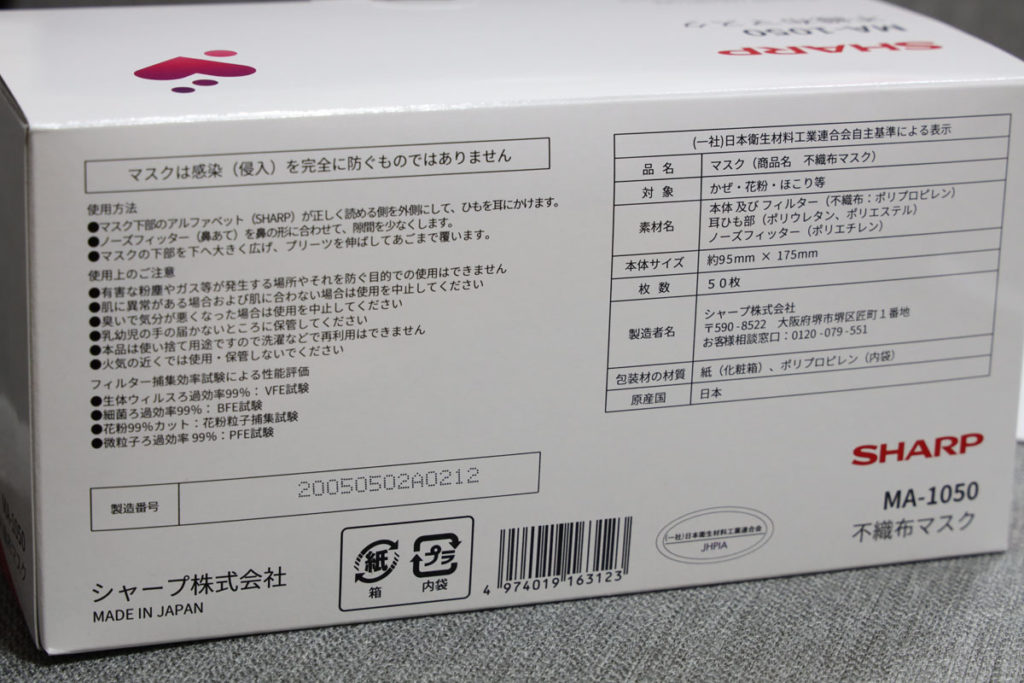 SHARPのマスクが届きました。