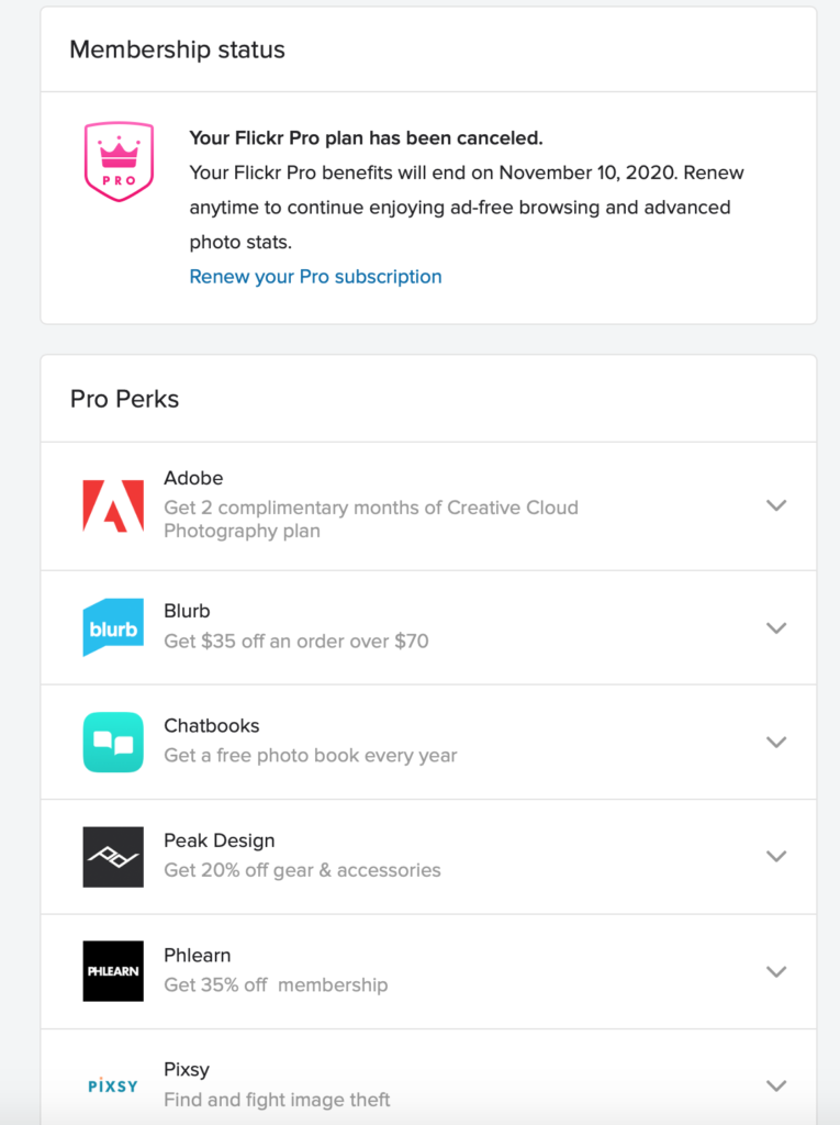 Flickr PRO、私は次回更新をしないつもりで既に保存枚数を1,000枚未満に整理しましたが、年間契約で支払っているので11/10まではPROアカウントです。