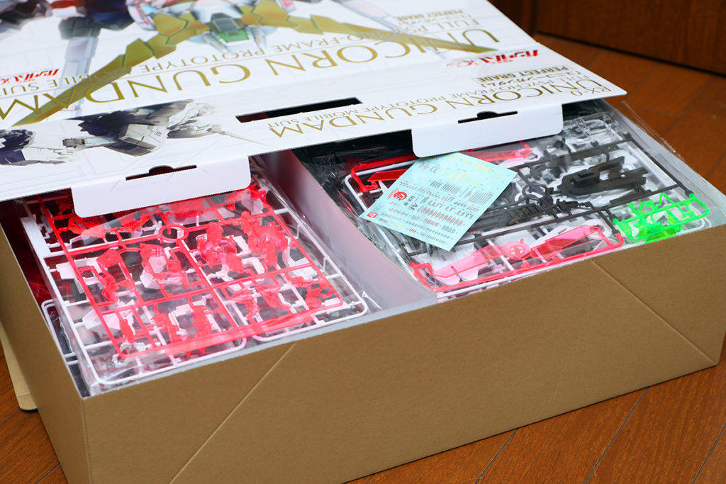 写真はPGユニコーン。収納用の小型の内箱は用意されていない。内箱風に見える中央の板は単なる仕切り板。