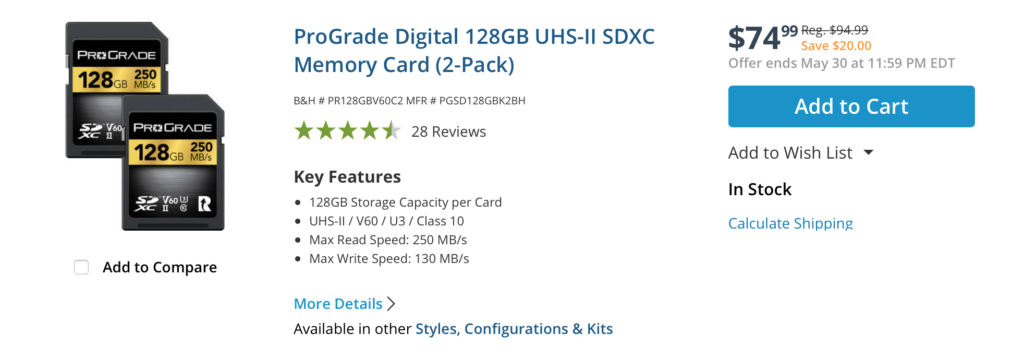 新興メーカーPROGRADE DIGITALのSDカードが5/30まで爆安ということで、私の周囲でも購入された方が多いです。新興と言っても元Lexarの副社長とエンジニアが立ち上げたメーカーということで、信頼に足るメーカーなのではないかと思います。日本ではAmazonでだけ買えるようですが、5月最終週にってから在庫がほぼ復活しません。1~2度在庫を復活しているのを見かけたのですが、カートに入れているうちに売り切れたりして、返品分の再販だったのかなぁと感じました。この価格だったら(たとえば128GBのUSH-IIカードが4,999円)、転売屋がボットを仕掛けて買い占めてもおかしくはないかなぁとは思います。