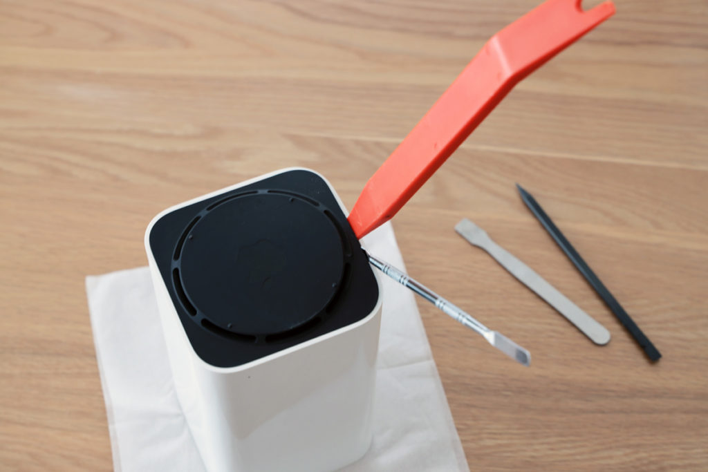 一般的な開腹工具より、自動車の内張剥がしの方が役に立ちました。まったく隙間がないのでどこに差し込むのか途方に暮れますが、黒い方のパーツに弾力性があるのでそれをあてにします。