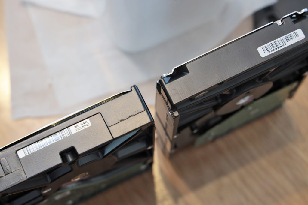 WD REDは筐体端部の切り欠きがないので、フローティング用のゴムパーツが合いません。(写真左がWD REDです。)