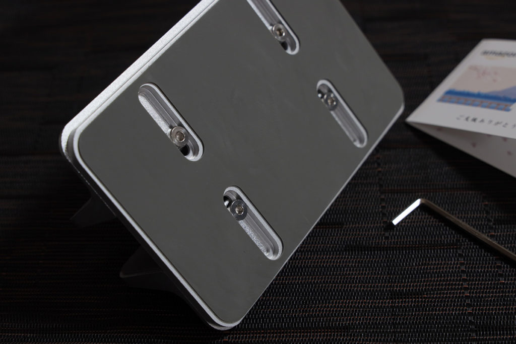 裏面には六角穴ネジがあり、挟む幅を無段階に変えられるようになっています。