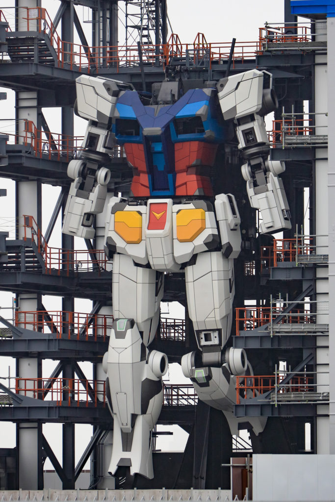 横浜に建造中の歩くガンダムに装甲が付いてきたという情報が入ったので、見に行ってきました。山下埠頭は原則関係者以外立ち入り禁止で、それゆえ今回は関係者からのSNSへの投稿が目立つのですが、私は関係者ではありませんので、入口ゲートの横にある小さな公園からの望遠撮影になります。(釣り目的であれば休日はゲート内側の釣り客用駐車場までは入れるという情報もあり、よく分かりません。その辺の白黒はっきりしない運用で成り立ってるのだと思いますが。おそらく魚市場の食堂に一般観光客が食べに来るように、邪魔にならない範囲で黙認されているような気もします。)