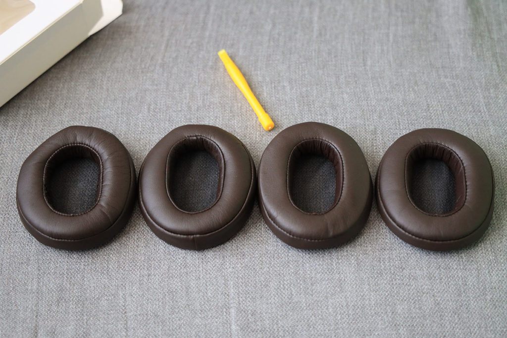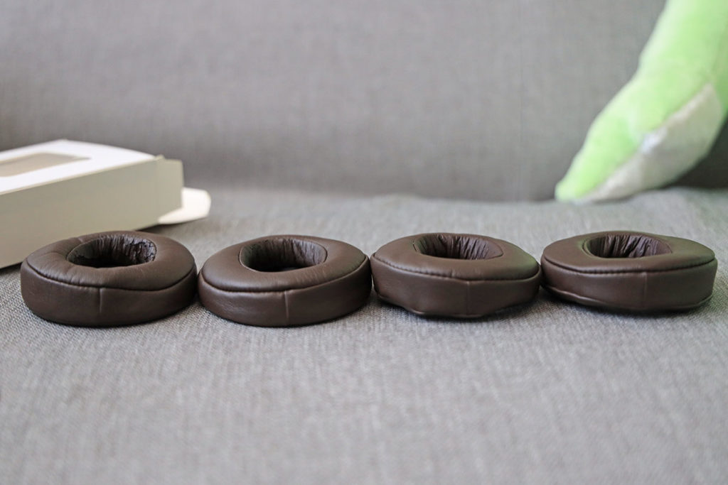 左2つが使用中のヘッドホンから外したもの、右2つが今回購入した社外品ですが、なんかこう社外品の方は縫製がうねっている上に左右で厚さが違って残念な感じです。