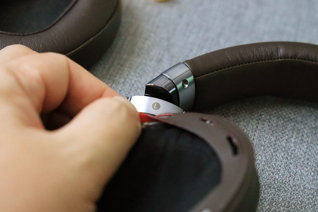 当初マウントパーツの上下を逆に勘違いしていて、それを正にするとイヤーパッドを左右逆につけないと収まらないのですが、「赤い方が右だよなぁ…なんで左にしかはまらないんだろう…」としばらく考え、「そもそもマウントが上下逆と勘違いで理解していた」のに気が付くのにずいぶんかかりました。赤い方が右ですからね!