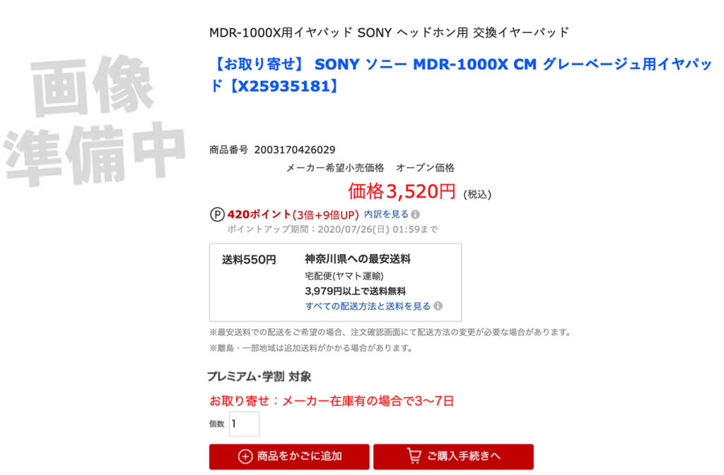 そこで広くネットで検索してみましたが、eイヤホンで取り扱いがある様子。しかし納期表記が「お取り寄せ」になっていて、あーこれは注文は受け付けるけど結局メーカーディスコンで手に入りませんでした、というタイプのやつね、と理解。