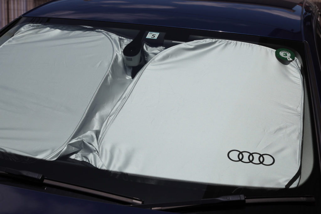 それに紫外線による室内の劣化の抑制にも効果があるのではないかと踏んでいて、期待したいところです。ただ、サンシェードとして一番効果があるのは車外(フロントガラス表面)に設置するタイプのようですが、自分はそれにはドアパッキンを傷めそうで抵抗があったので通常の室内設置タイプを選びました。