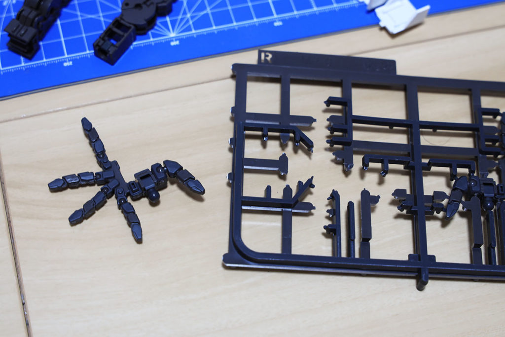 さて、本日は腕を作っておりますが、いきなりハイライト。高級なガンプラ名物、切り取るだけで動く関節です。