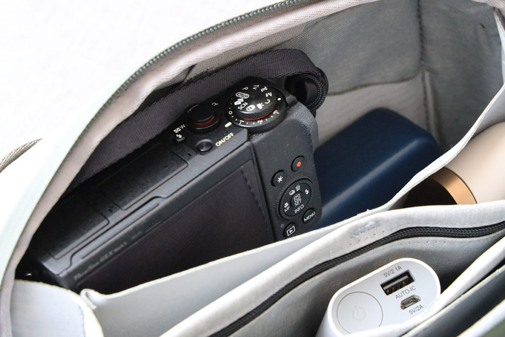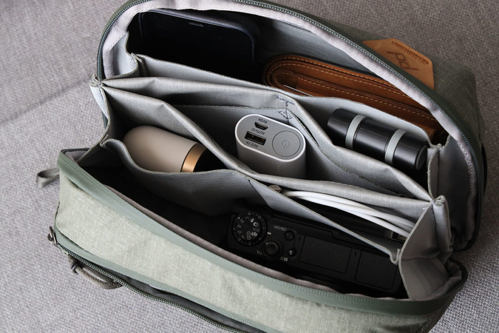 同社のエブリデイバックパックの気室の1つにすっぽり入る収まりの良さ。Peak Designってこうやって芋づる式に使いやすくなるの、得意ですよね。引っ張って取り出すのに便利な取っ手もついてるのがニクイ。
