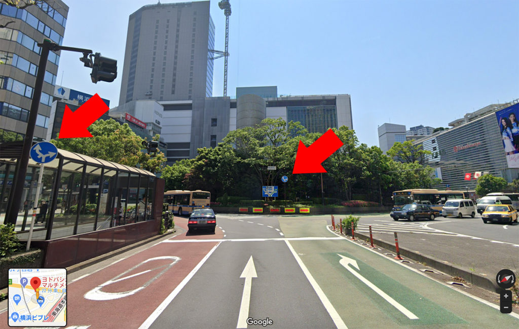 友人が横浜ヨドバシ前の交差点で交通違反で切符を切られました。何のことだか分からなかったのですが、どうも横浜ヨドバシ前の交差点には「左折禁止」のようです。