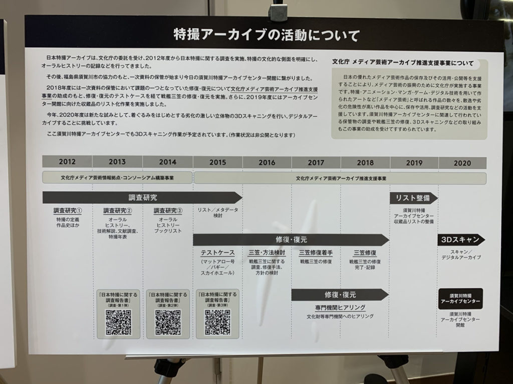 仕事でこっち方面に用事があるので、福島県須賀川市に11/3にオープンしたばかりの「須賀川特設アーカイブセンター」に寄ってみました。須賀川市というのは特撮の神様である円谷英二氏の出身地で、それゆえ特撮文化の維持啓蒙に力を入れています。このアーカイブセンターの収蔵品は、庵野秀明監督らが設立したNPO法人「アニメ特撮アーカイブ機構」が協力しているそうです。