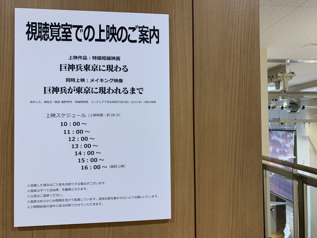 最後に「巨神兵東京に現る」を見て終了。お客さんは地元の高齢者の方が多かったですかね。早い人だと巨神兵の映画をスルーして全体を10分くらいで見終わってしまうようで、東京方面からこれだけのために来るのはちょっと勿体ない気がします。近くにある「円谷英二ミュージアム」とセットで訪れるのが良いかも。