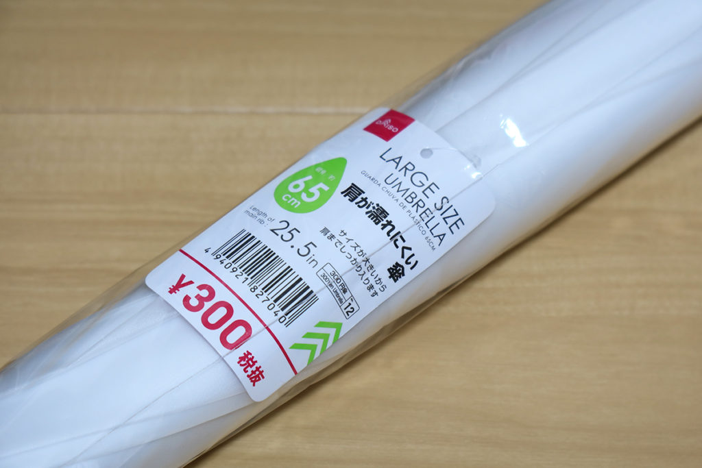 ダイソーで300円の白い傘を買いました。いつか買おうと思っていてもつい忘れてしまう程度のものでしたが、先日ツマとムスメがメガネを作ったときの待ち時間に、メガネ屋の向かいにあったダイソーを回っていて思い出しました。何に使うかと言うと、ブツ撮り時のディフューザーですね。撮影ブースを持ち出すほどでもないけど、テカリや影を抑えたいとき、今まではその辺にあるもの(レフ板や、ボード、普通の傘)で光源を遮ってきました。しかし不透明なもので遮ると暗くなりすぎるときがあって、もうちょっとマイルドに光源を分散したいと思っていました。