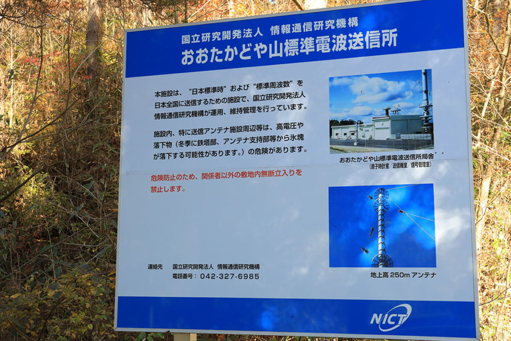 次はいつか見たいと思っていた大鷹鳥谷山(おおたかどややま)にある「標準電波送信所」へ。