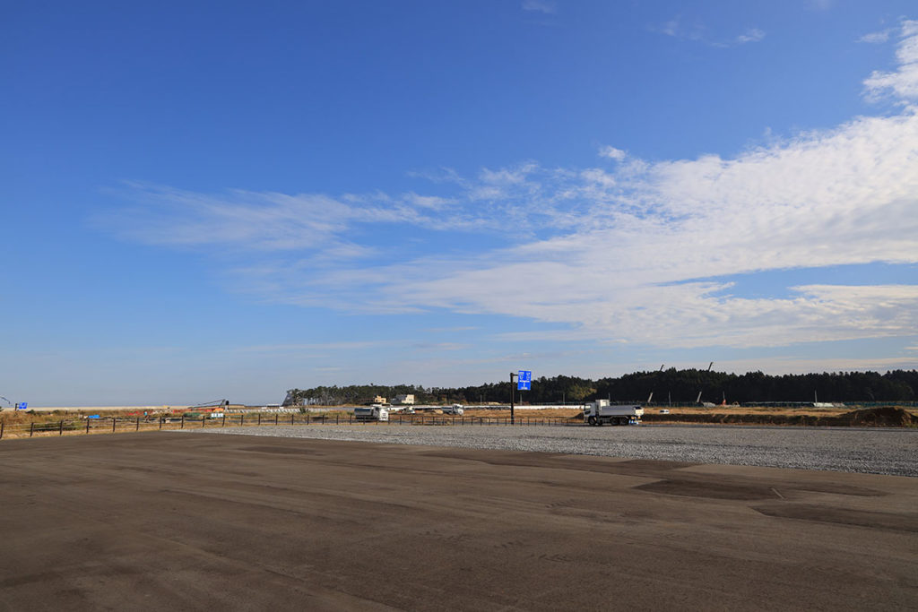 この右手の林の向こうが、F1です。なおここの線量はだいぶ除染したようで 0.05μSv/h。まぁ普通です。