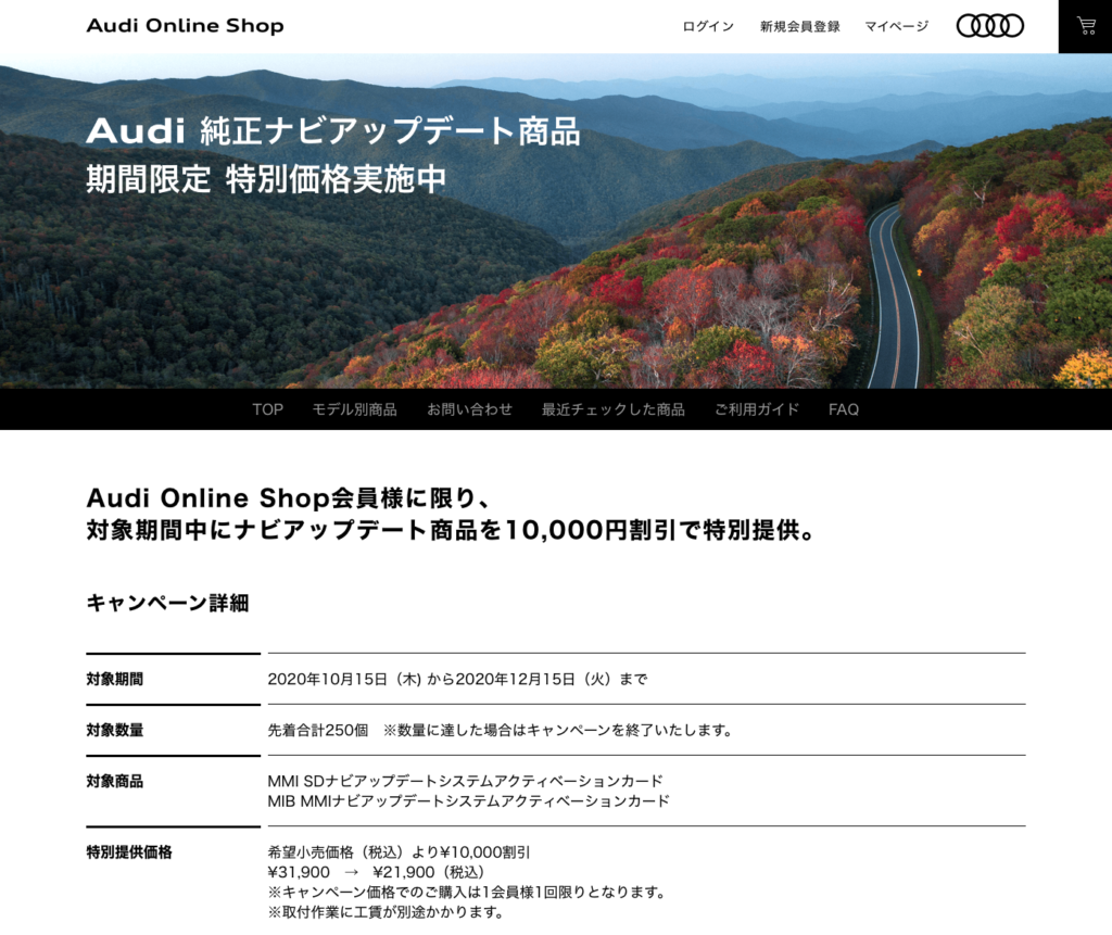 Audi Online Shopが、純正ナビの地図アップデータを10,000円引きにて販売中です。