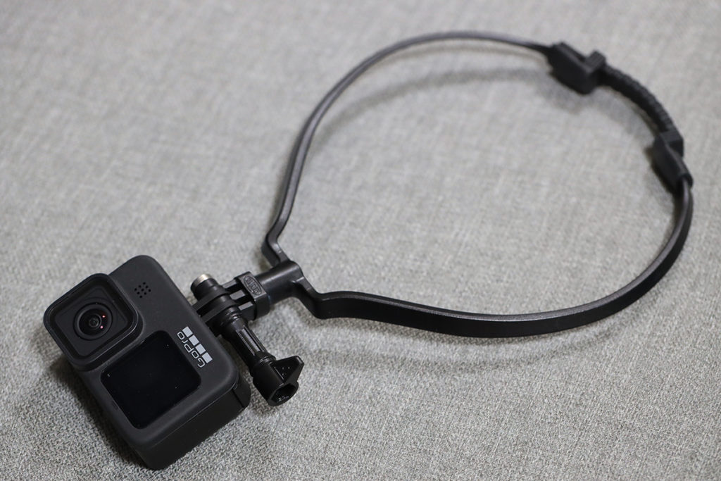 という訳でGoPro用としては定番のGLIDERネックマウントに、ソフトアジャスターというエクステンションパーツが付いたものを購入。最初に深く考えないで装着したらすごい違和感だったのですが、よく見ると表裏がある構造ですね(笑。テーパーの付いている方を体に当てるようにした方があたりが柔らかいです。まぁ柔らかいと言ってもネクタイ締めるくらいのタイト感はありますが。(なお当方、首回り47cmです。)ネクタイで言う結び目のあたりがGoPro取り付けネジのあたりだと思ってください。思ったよりかなり顔に近い位置にGoProが来ます。