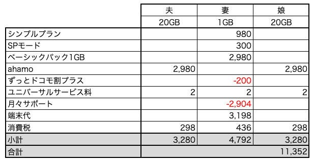 ここにahamoを導入してみます。ツマは月々サポートを使った方が安いので、ムスメと私だけahamoにしてみます。