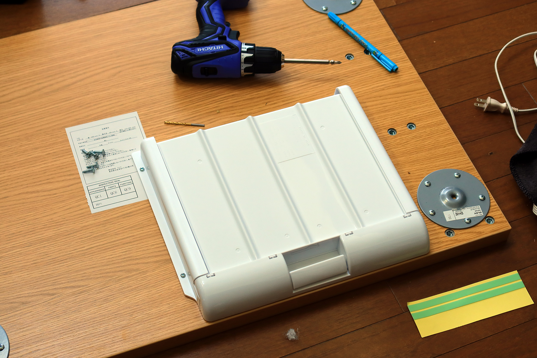 両面テープまたは木ネジで引き出しが追加できます。まぁ質感は樹脂製でアレなんですが、機能的にはないより全然マシ。