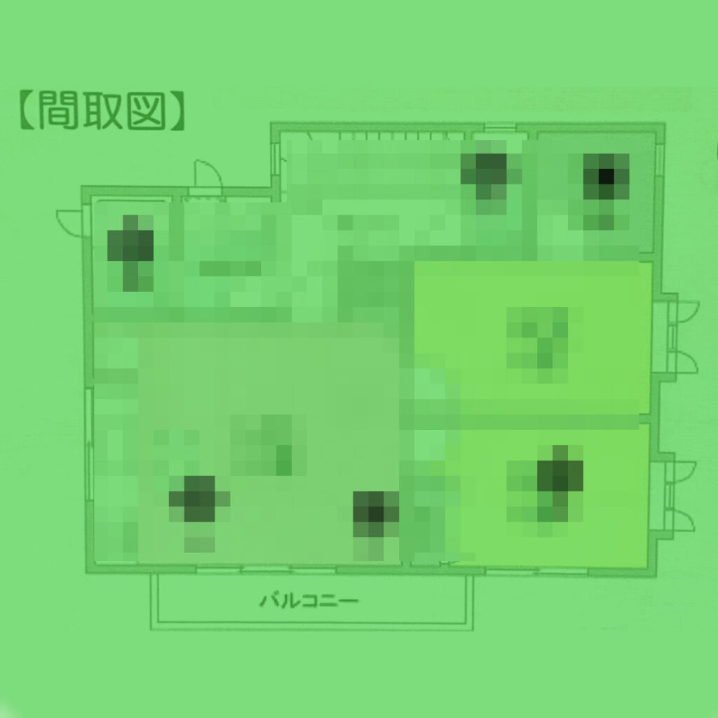 こちら二階。リフォーム前の図面なので若干間取りが違いますが、中央付近に設置した1台で概ね網羅されています。