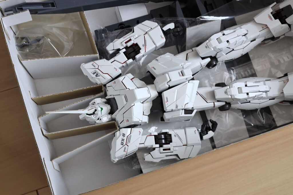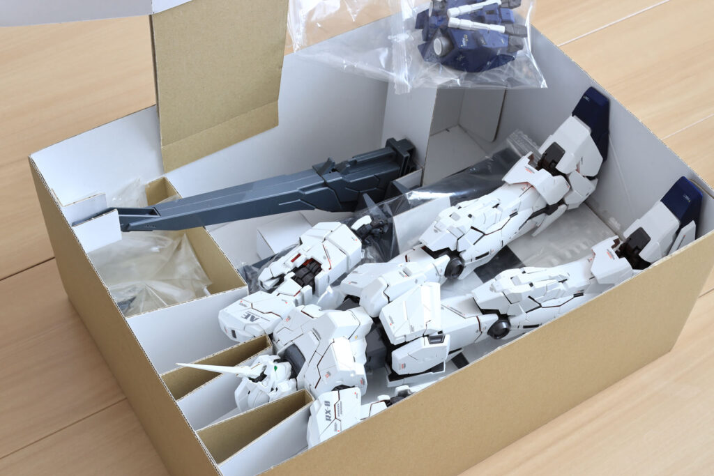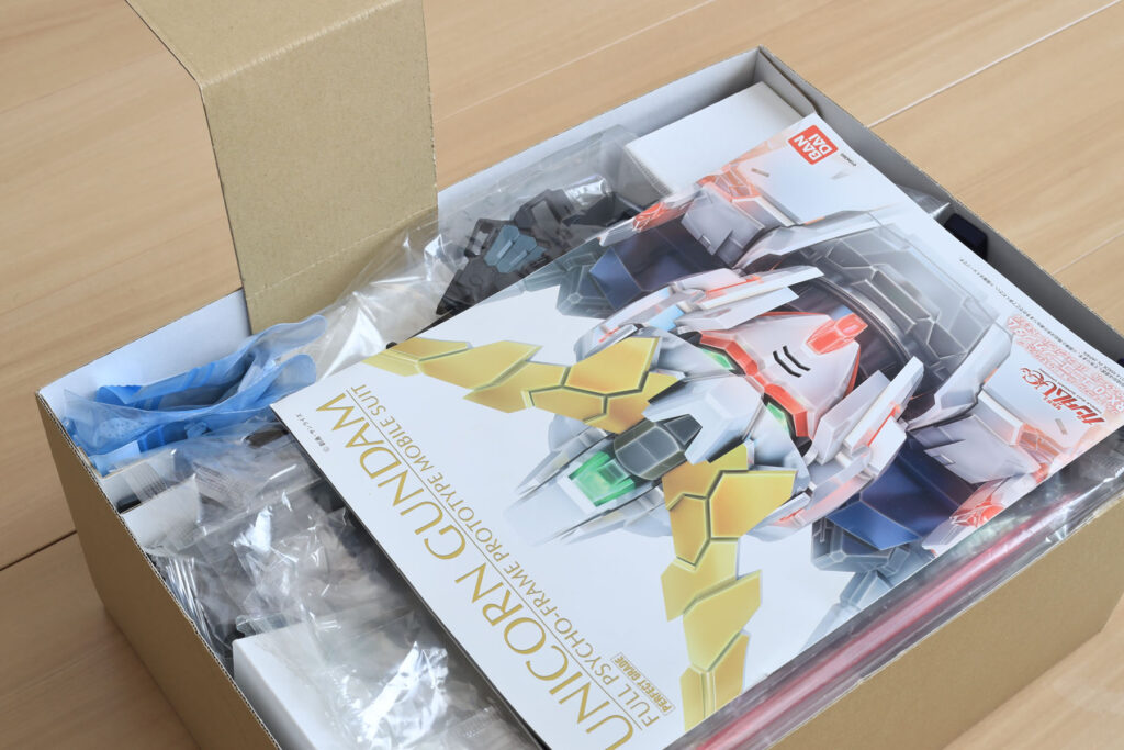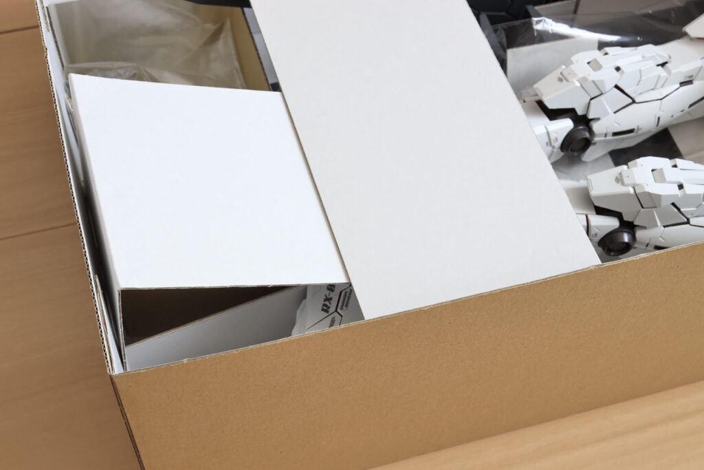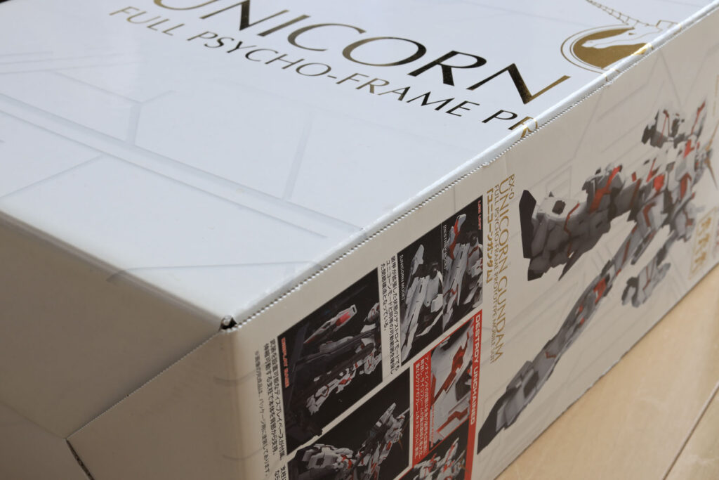 ガンダムUCは「箱の鍵」の話でしたが、今回は箱がカギになる話。保管スペースを圧縮すべく、PGユニコーンガンダムの箱を半分の大きさにしました。