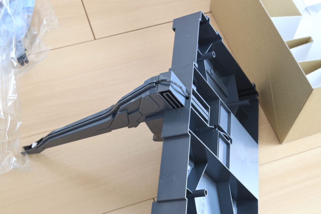 ガンダムの下にはスタンド基部が入っていますが、ガンダム本体と直接擦れないよう、ガンダムと接触する部分に緩衝用のフラップをつけています。