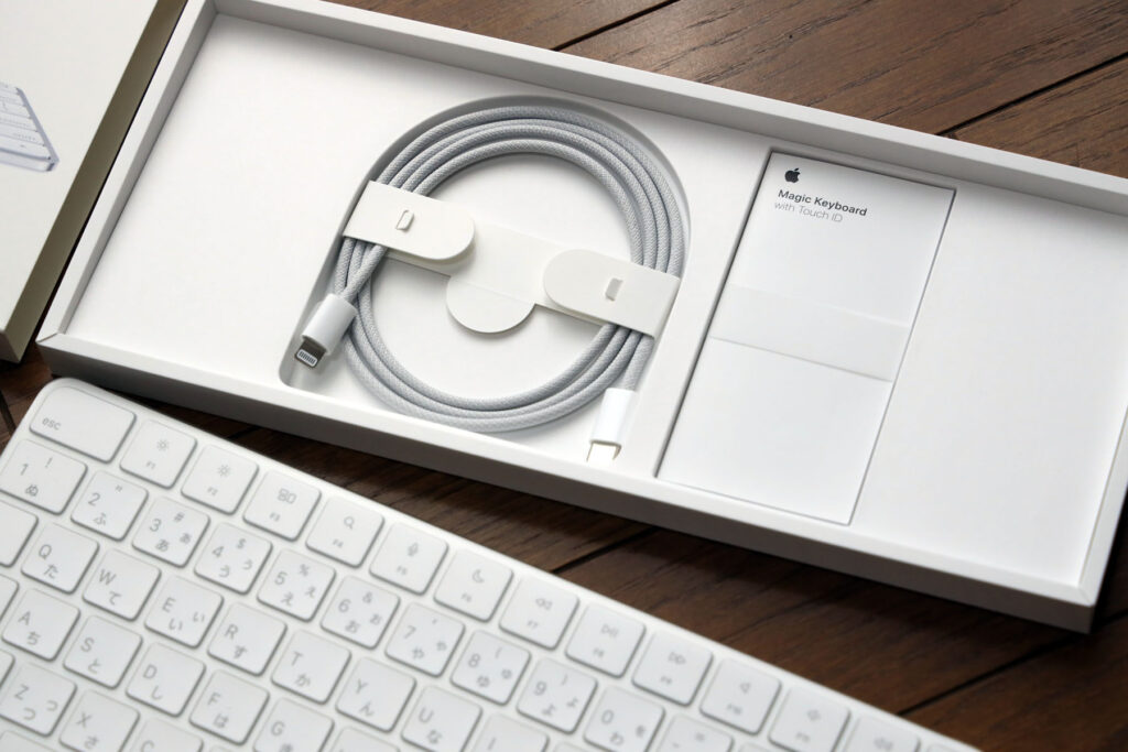 その名の通り、M1 Mac専用のApple純正ワイヤレスキーボード、タッチID付きです。タッチIDの部分のセキュアなワイヤレス通信をするのにM1チップが必要なのだそうです。いままでMacBook Air M1ではクラムシェルモード時に懐かしの乾電池式Apple Wireless Keyboardを使っていましたが、乾電池が一ヶ月でなくなってしまうのでやっぱり充電式がいいなぁと思い始めていた頃、M1 iMacに付属するこのキーボードが単体販売になると聞き、ポチった次第。