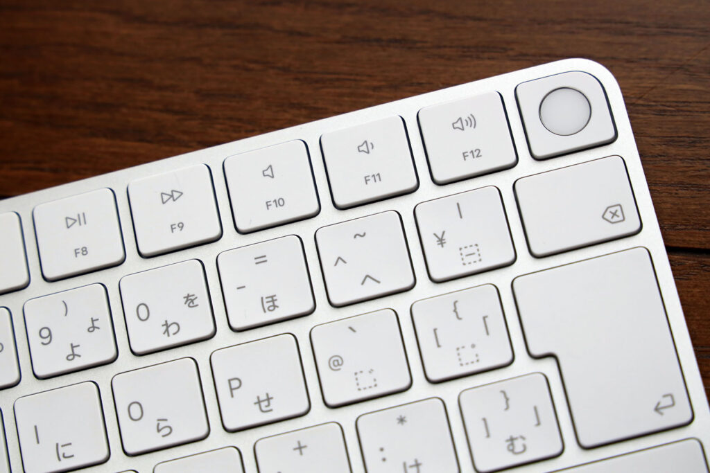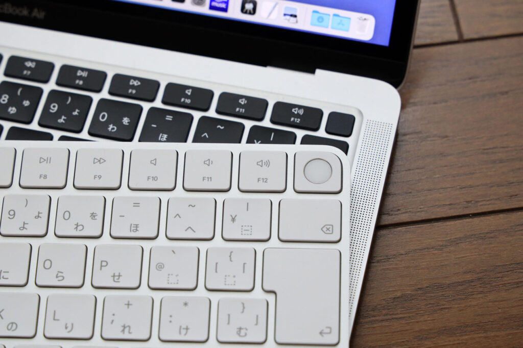 右上に見慣れないTouch IDボタンが。MacBookのTouch IDボタンとも違う形状です。