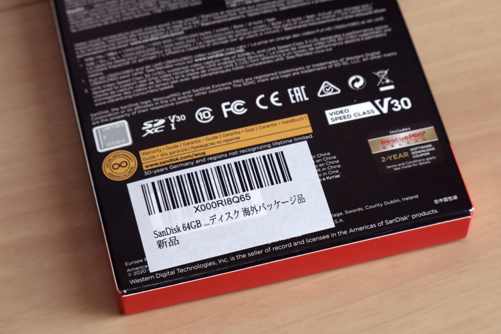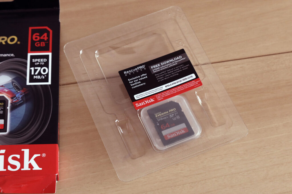 ちゃんとRescuePRO(ファイル誤消去時のリカバリーソフト)のシリアルも付いてくるので、Amazonで安いSanDiskを買ったときに心配な偽物ではなさそうです。本物が安価に出回れば偽物が駆逐できるのでいいですね。