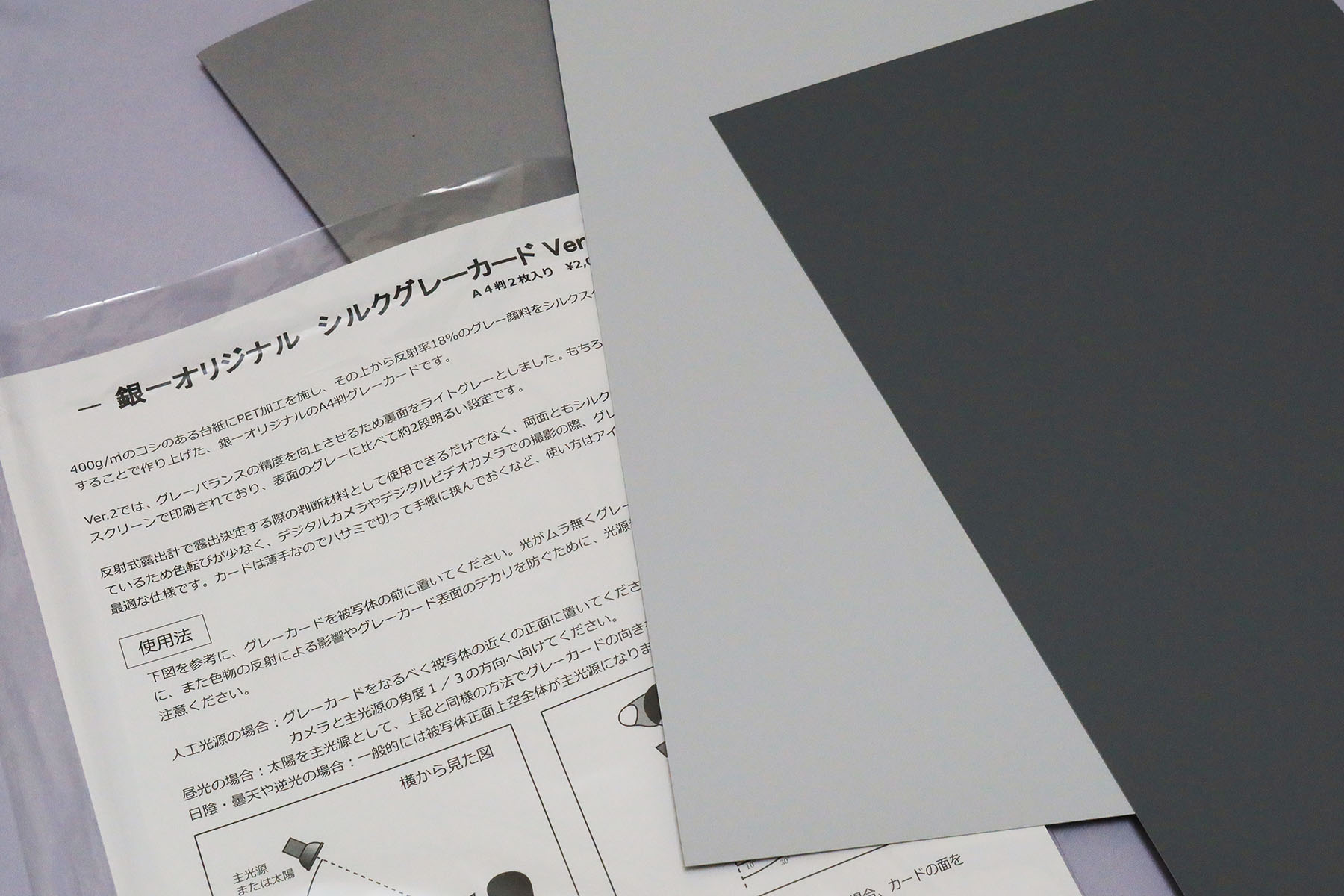 よって、18%グレー/50%グレーがそれぞれ片面ずつに印刷された厚手の紙が2枚(合計4面)入っています。