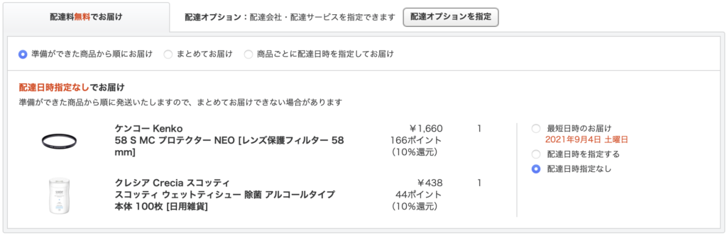 一か八かみたいなところはありますが、「あれ、今までこれくらいの時間ならヨドバシは明日には到着していたのにな」という感覚でいるのに「最短日時のお届け」が明後日の表示になっている場合、「配達日時指定なし」にすると今まで通り明日届くことが多いです。時と場合によっては試してみてはいかがでしょうか。