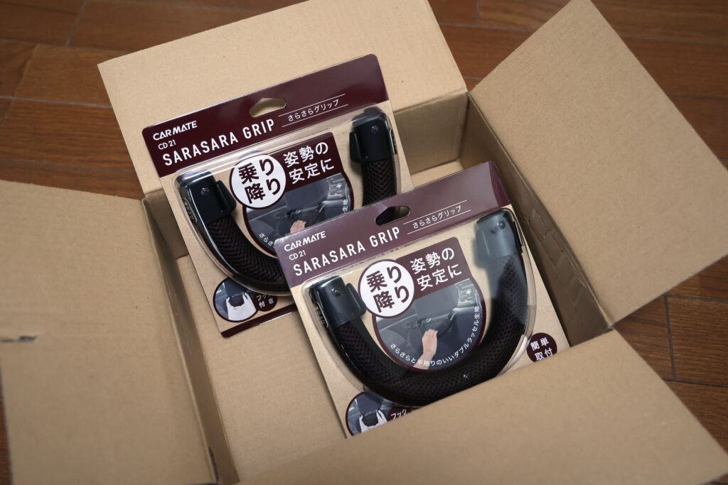 妻が介護で親をパッソにしばしば乗せているので、後席用グリップがあったほうがいいかなと思い、付けてみました。純正のは1個6千円以上するのですが、このカーメイトのものはなんと1個千円足らず。