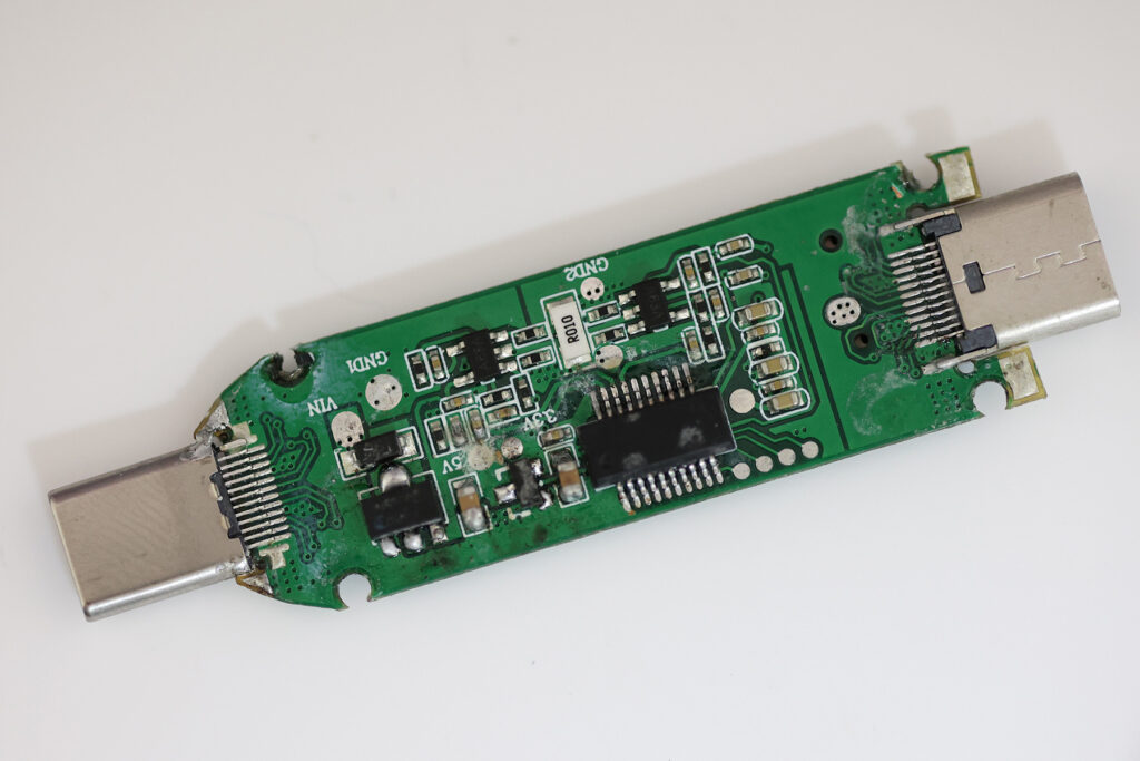 故障したUSBチェッカー RT-TC3VABKをそのまま棄てるのも惜しい気がして、殻割りしてみました。