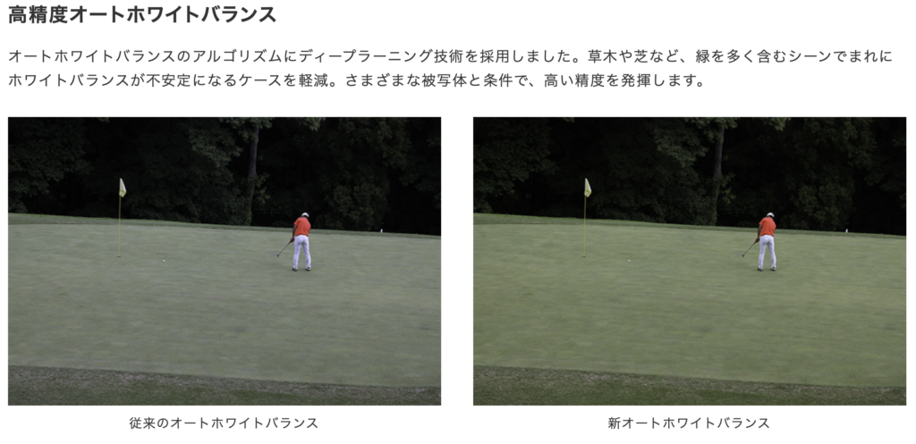 ついに弱点にメスが入りました! これ延々と改善されなかったんですけど(しかも後工程で直すのも大変)、ついにですね。でも対応するのは緑色だけですか? フローリング床一面とかも正しい色で撮れないですけど。これは特にハードウエアは要らないでしょうから、積極的に横展開して欲しいなぁ。
