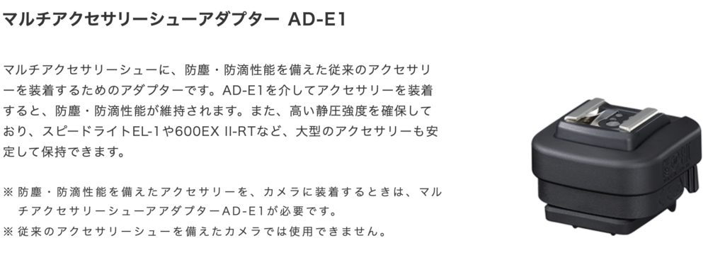 アクセサリーシューは形状が変わったせいで従来の防水アクセサリ(600EXとか)と形状に互換性がないようです。従ってこういったアダプタが必要になる模様。これはダサい!(笑